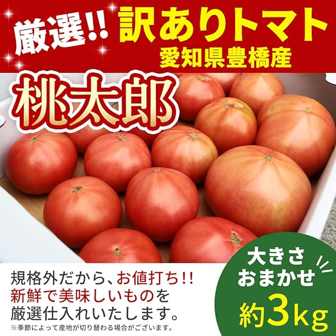 訳あり 愛知産 トマト 桃太郎 3kg (訳あり品につき、大小、スレ、キズ、変形がございます)