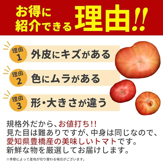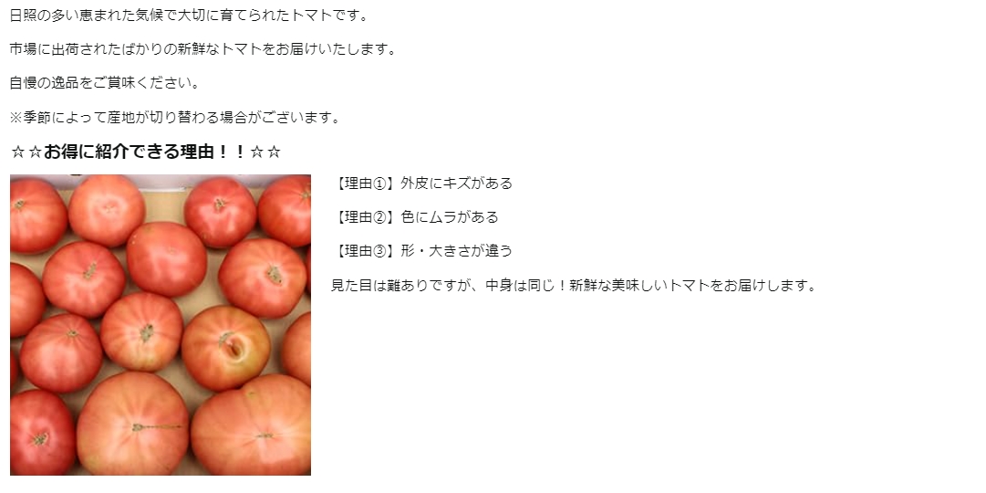 ☆☆訳ありトマト☆☆ 規格外だから、お値打ち!!新鮮で美味しいものを厳選仕入れいたします!
